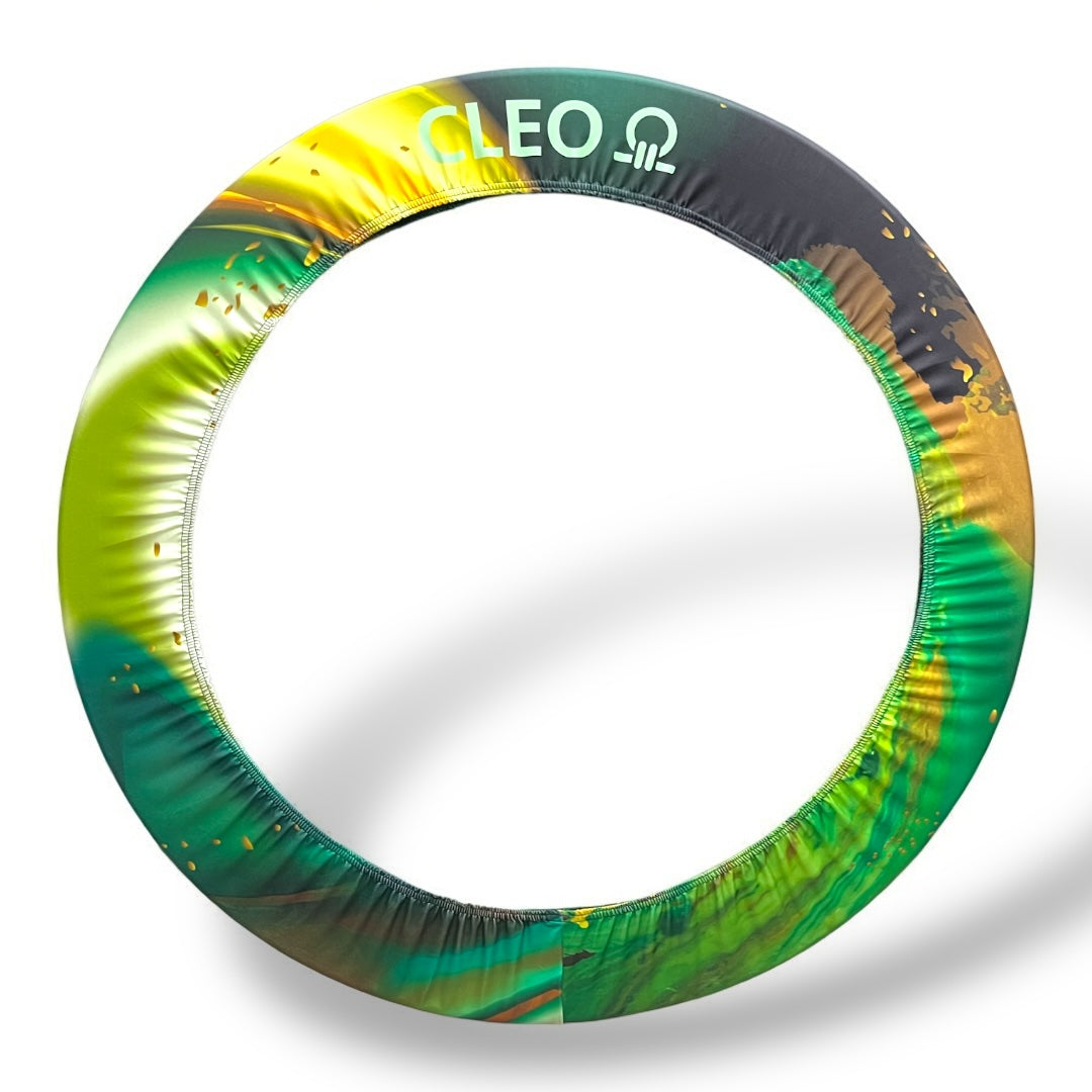 يعتبر غطاء طوق الجمباز الإيقاعي هذا جديدًا وبريًا ومليئًا بالطاقة، ويتميز بمزيج مذهل من الخضرة المورقة والذهب الناري.