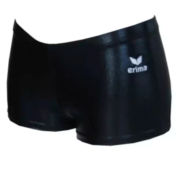 شورت الجمباز إيريما مصنوع من قماش لامع باللون الأسود.