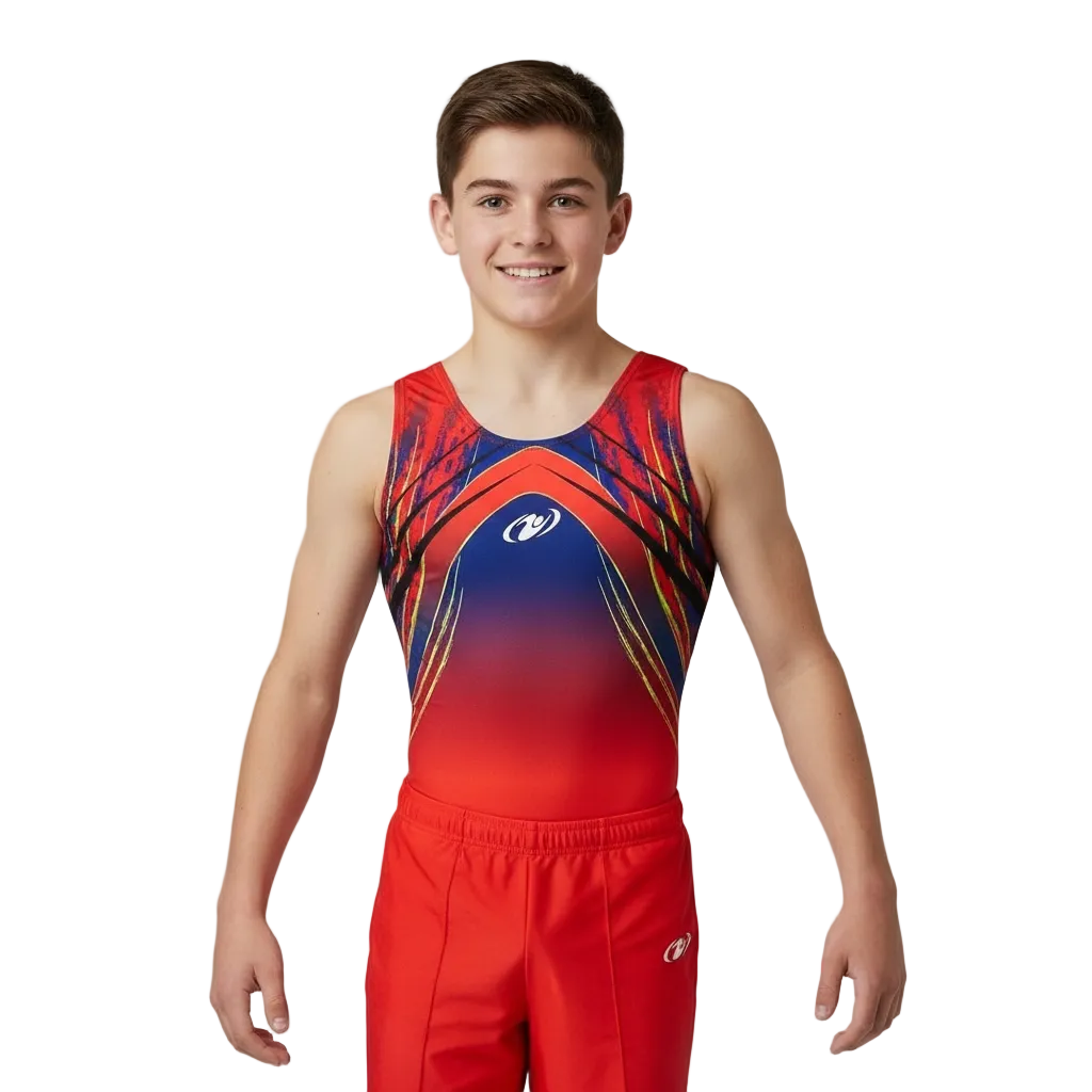 Printed leotard in Lycra fabric for men gymnasts.