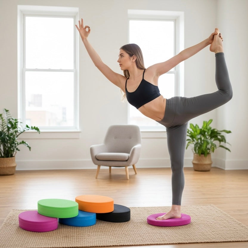 لوحة توازن بيضاوية من الفوم غير القابل للانزلاق: مثالية لزيادة مرونة المفاصل وتخفيف توتر العضلات.