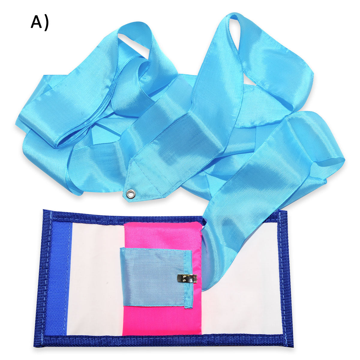 الصورة A – لتخزينه مع العصا، قم بقفل نهاية الشريط ولفه بحيث تبقى العصا خارج المحفظة والشريط محفوظًا بأمان داخلها.