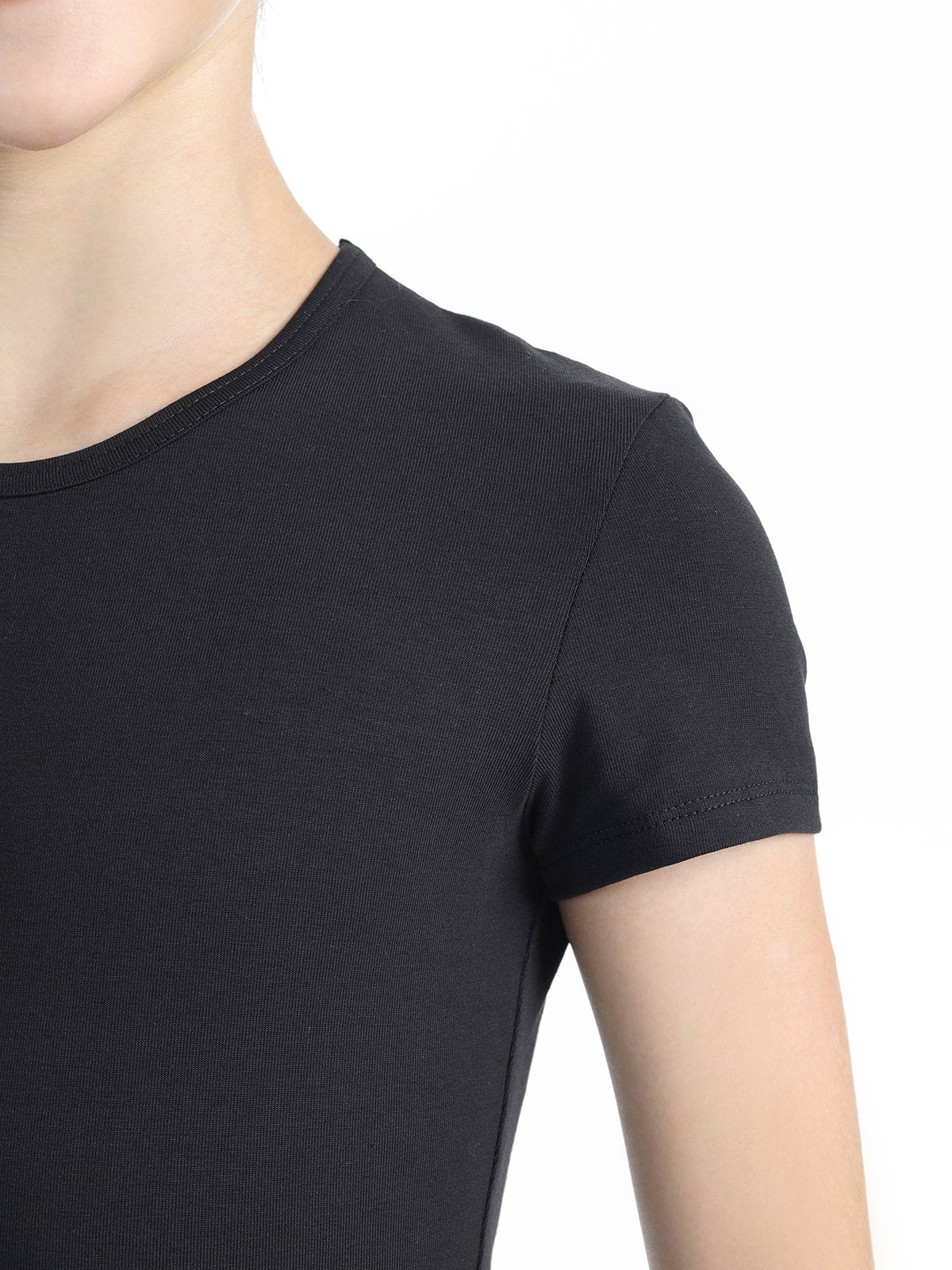 تيشيرت ضيق باللون الأسود مع ظهر مغلق، مزود بإدخالات جانبية من شبكة محاكة باللون الأسود.