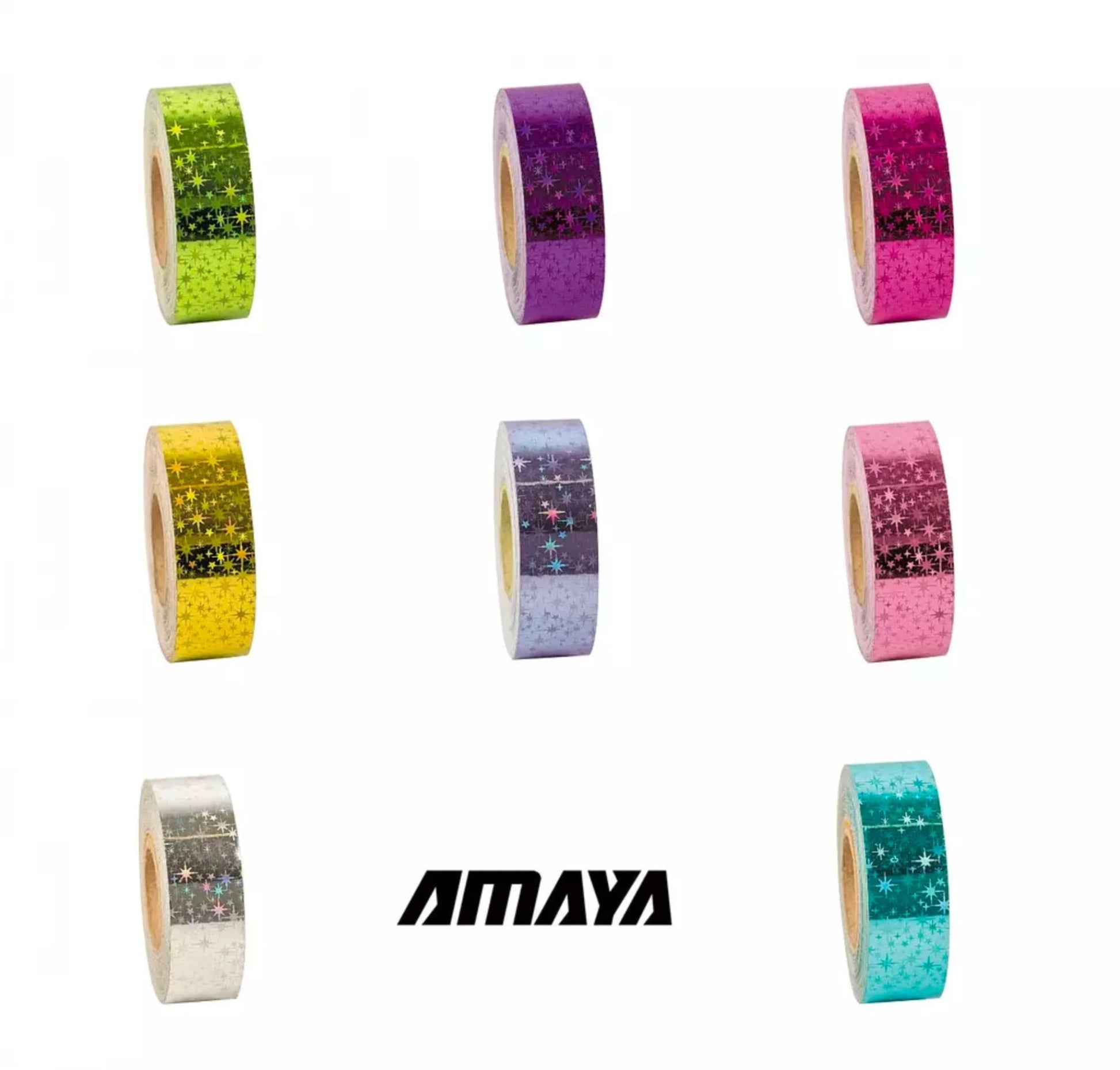 Made of adhesive vinyl with holographic foil lamination layers for rhythmic gymnastics.