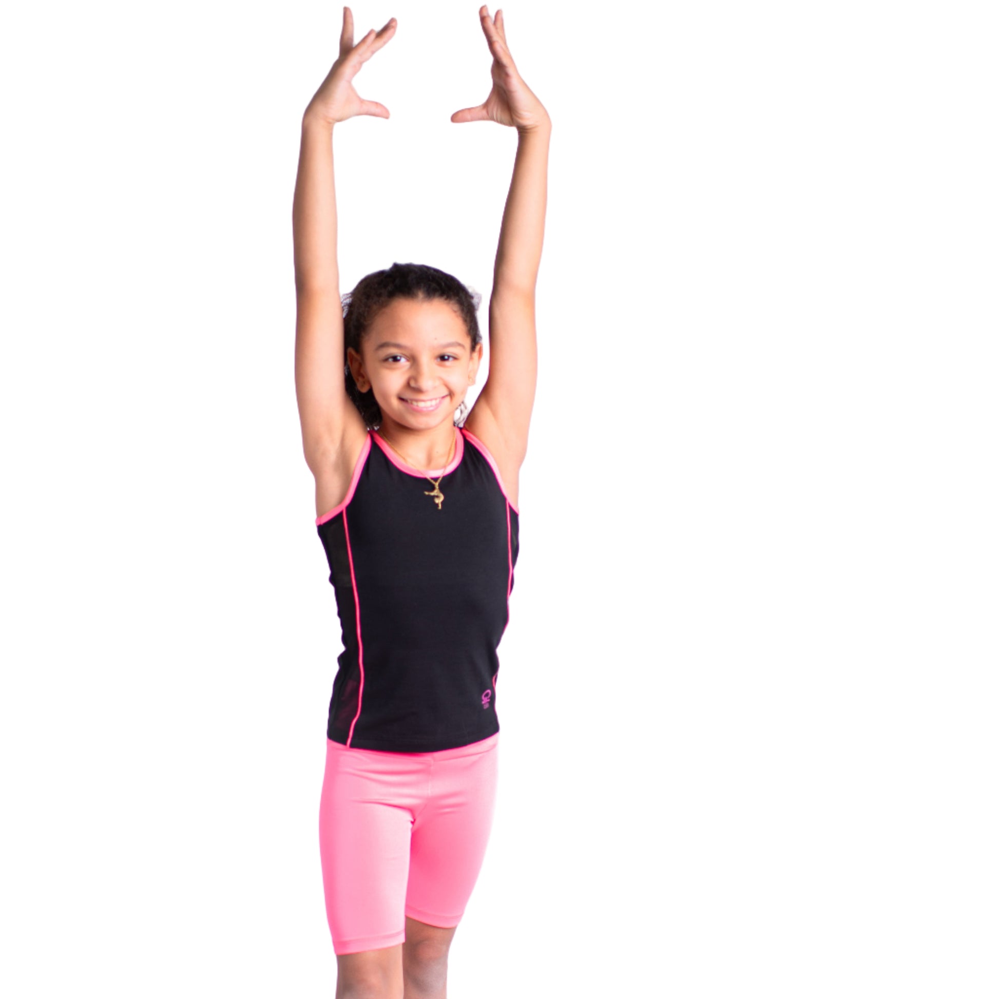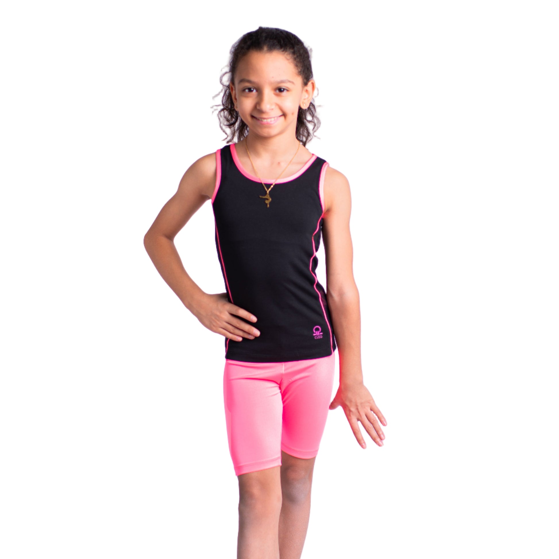 Thin contrasting vertical cantiles, sleeve edging and neck are made in neon pink color.