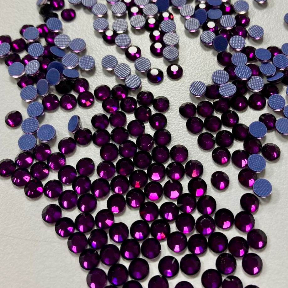 This is a hotfix rhinestone. It features a smooth adhesive backing that activates with heat. When the adhesive melts, it bonds securely to the fabric with the pressure you apply, allowing you to attach it to any garment you choose.