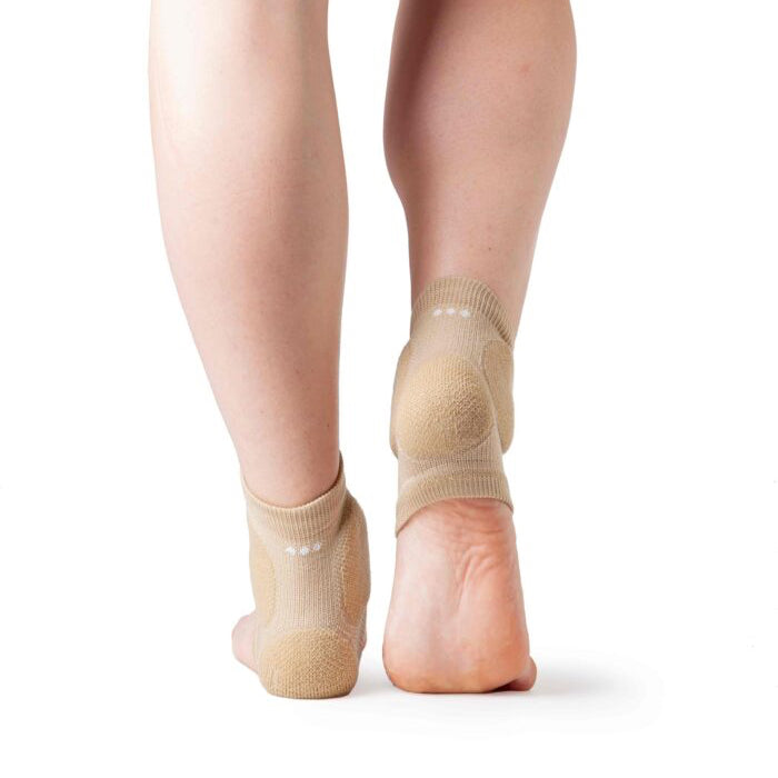 Ankle sock with open toe and sponge padding that provides protection to the ankle and heel area.