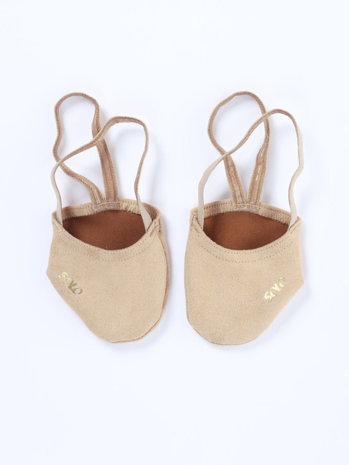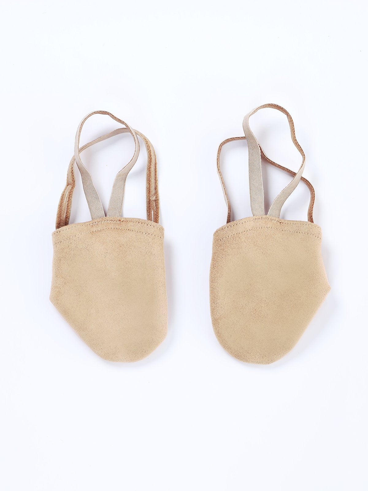 These half-shoes (also known as foot thongs) are made of soft, stretchy artificial suede in a nude color, designed for gymnastics and dance.